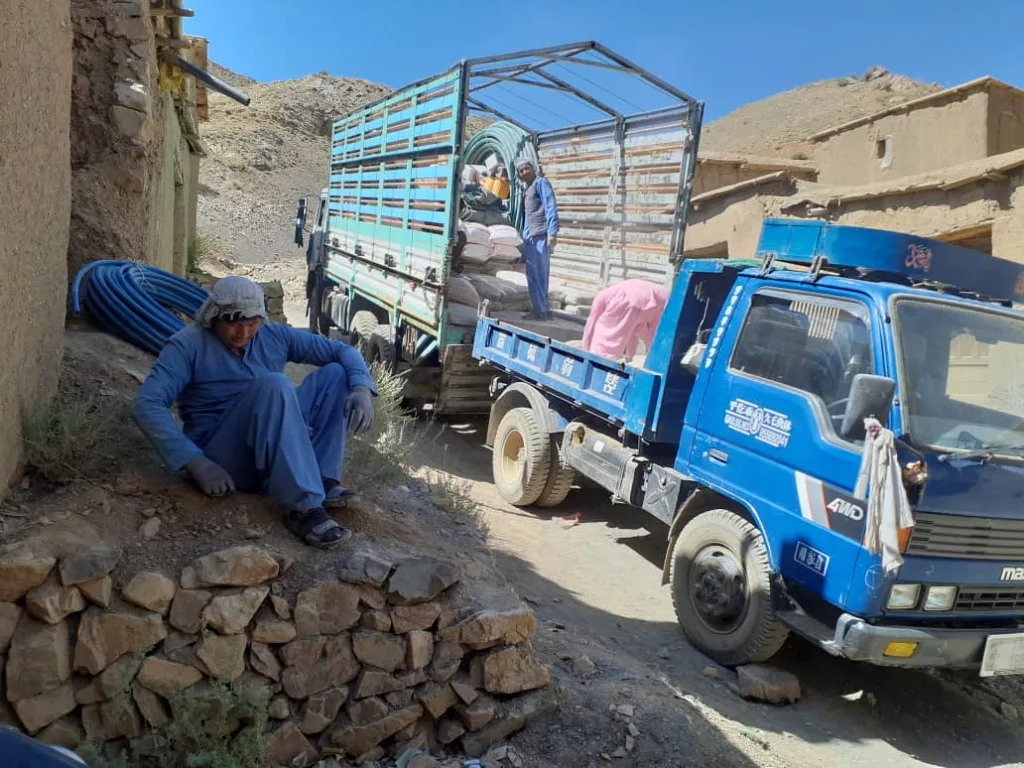 Von vier Quellen oberhalb des Dorfes werden Leitungen zu einem Wasserreservoir verlegt. In den wasserknappen Monaten im Sommer und Herbst, kann so das Wasser ohne Verdunstung und Versickerung direkt ins Wasserreservoir geleitet werden – auch Nachts. Die Eigentümer der Quellen haben ihr Einverständnis gegeben, dass das Wasser abgeleitet werden kann, da sie dort keine Anbauflächen betreiben. An den Quellen werden kleine Becken (Hoz-Tschak) angelegt und von dort werden die Leitungen unterirdisch bis zum Wasserreservoir verlegt. Entlang der Leitung sind sogenannte „Clean-Out“-Stellen vorgesehen. Falls es zu einer Verstopfung kommt, kann diese dort mit einer Handspirale (Rohrreinigungsspirale) beseitigt werden. Die Verantwortung für die Wartung übernehmen die Bewohner des Ortes. Es wird PE-Rohr DN 40 – 16 Bar verlegt also mit einen Durchmesser von 1 ½“ Zoll (47,8mm). Insgesamt sollen 500 m Rohrverlegt werden.